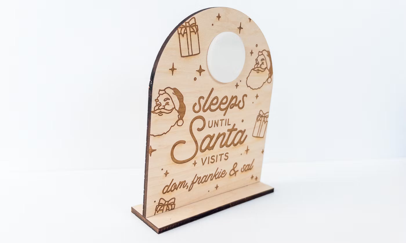 Countdown the days until Christmas with this beautifully crafted wooden Christmas countdown sign! Made from natural wood and laser-cut in our small business workshop, each piece features a whiteboard section so you can easily update the number of days left until Christmas with a dry-erase marker. (Whiteboard marker not included.)